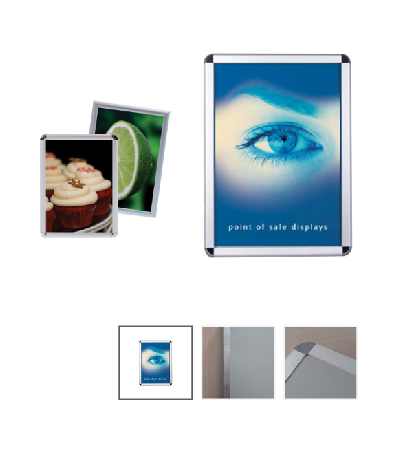 cadre clip en aluminium anodisé à ouverture 4 bords pour signalétique affichage intérieur. insertion affiches avec protection du visuel par une feuille polycarbonate translucide mat. vis et cheville de fixation murale fournies. couleur du cadre ( alu ou noir). Format 21 x 29,7 cm